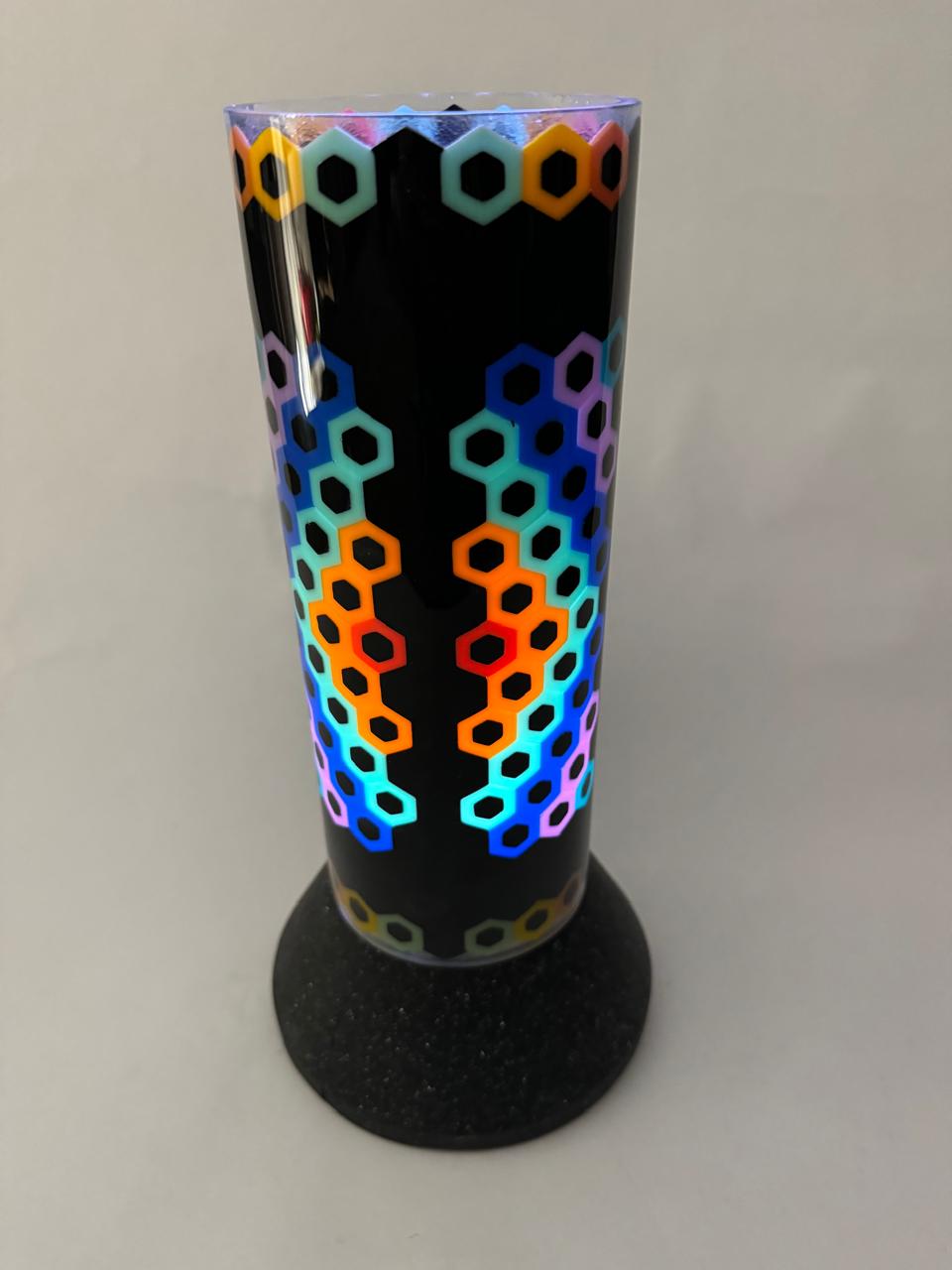 Lampara de mesa grande de vidrio fusionado hecha a mano con vidrio de colores, base de concreto pulido iluminación LED con control remoto